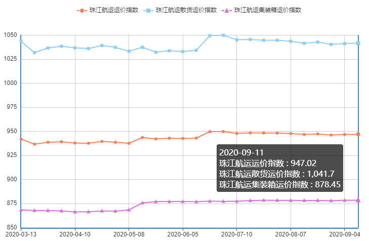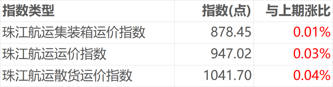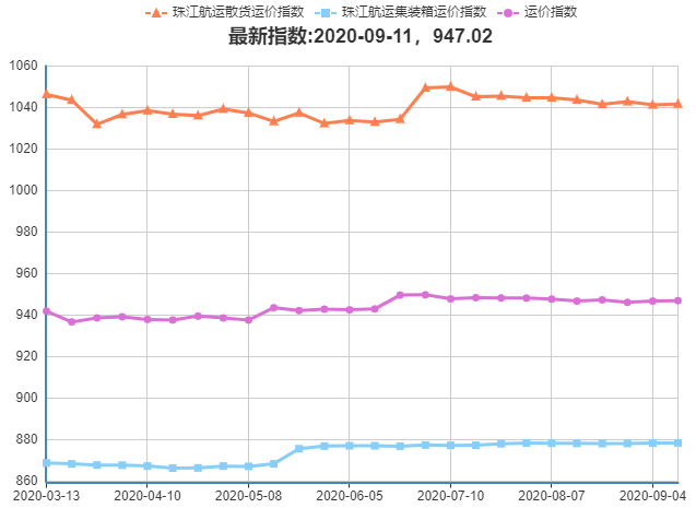 广州航运交易所发布的珠江航运散货运价指数报收1041.7点,较上期上涨0.43点。
