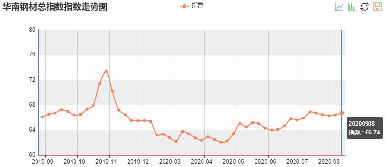 华南建筑钢材价格指数。数据来源:钢铁王国