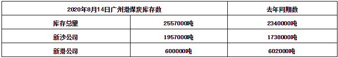 广州港煤炭库存。数据来源:广州华南煤炭交易中心