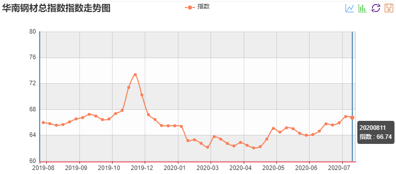 华南建筑钢材价格指数。数据来源:钢铁王国