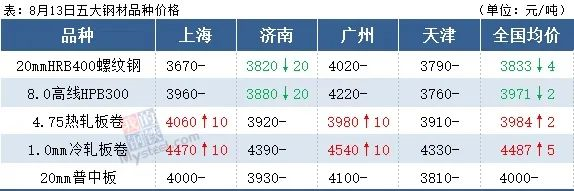 主要钢材品种价格变化。数据来源:我的钢材网