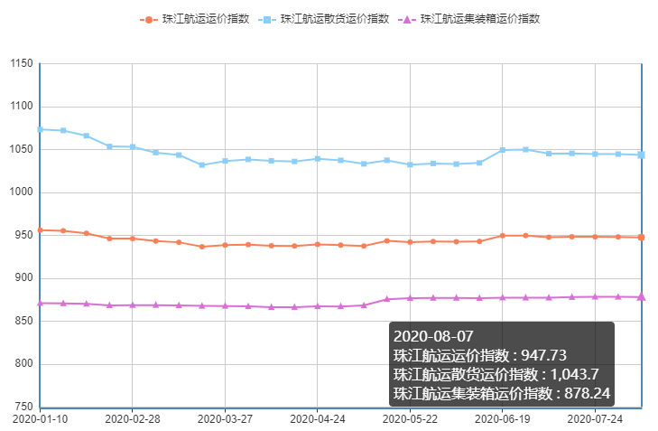 广州航运交易所发布的珠江航运散货运价指数报收1043.7点,较上期下跌1.02点。