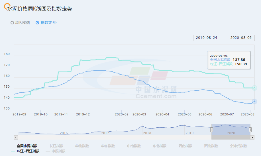 华南建筑钢材价格指数。数据来源:水泥研究院