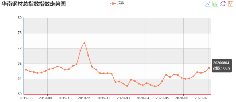 华南建筑钢材价格指数。数据来源:钢铁王国
