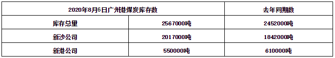 广州港煤炭库存。数据来源:广州华南煤炭交易中心