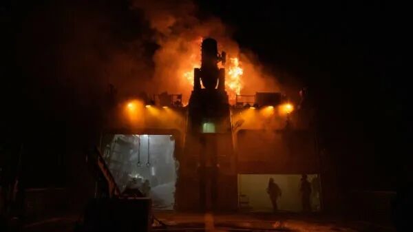 经过90分钟的灭火,大火被扑灭。5名船员在灭火工作中受不同程度轻伤。损坏程度和起火原因仍在调查中。
