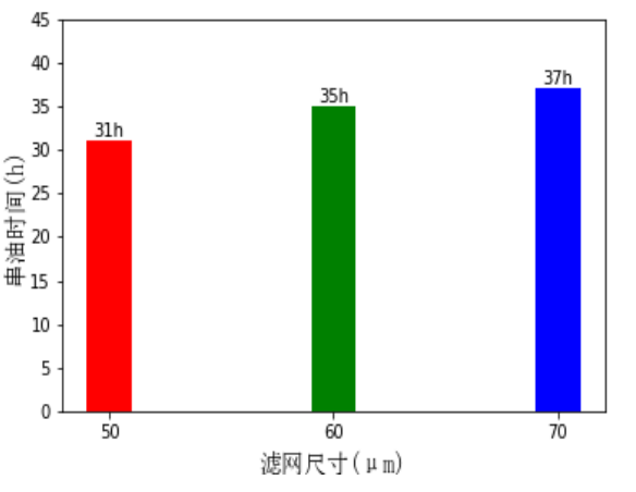 由试验结果可知,滤纸尺寸为 50μm 串油时间最短。