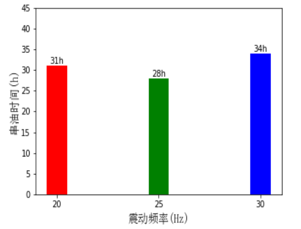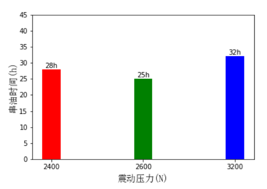 过高的震动压力及震动频率会使得主机管路震动过于强烈,导致主机滑油管系串油的效果反而降低,从图中观察可知当震动频率和震动压力的最佳参数值分别为25Hz和 2,600N。
