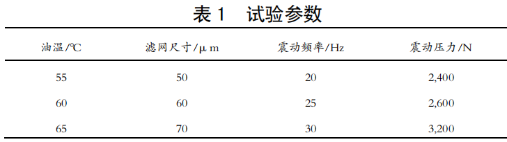 本文通过对温度、震动频率、震动压力及滤网尺寸等技术参数的优化。