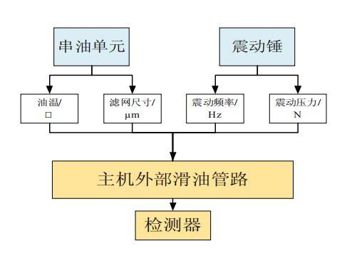 如图1 所示,通过调节串油单元的温度、滤网尺寸大小、震动锤的震动压力以及震动锤的震动频率对管路串油的清洁度进行试验,目的是达到的主机滑油污染度等级要求,即 ISO 4406 19/15 标准。