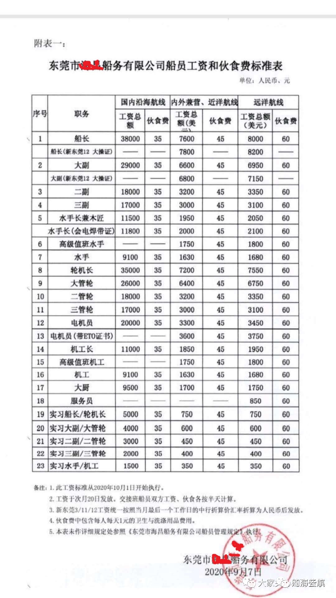 3、【船员工资伙食实录】,某公司2020年9月7日发文;