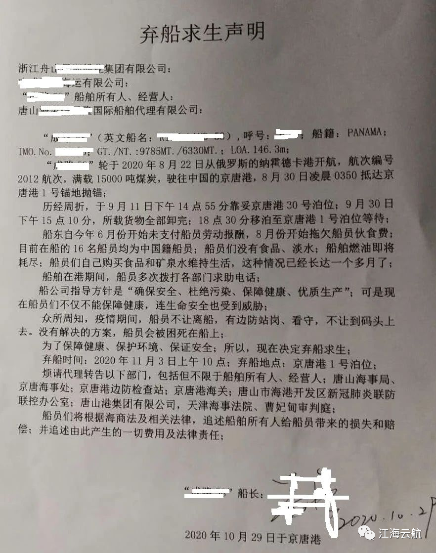 6、一则“弃船求生声明”;