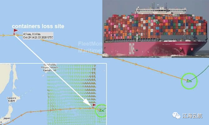 据悉,10月30日上午,一艘集装箱船“One Aquila” 号在日本和美国海岸之间的北太平洋航行途中遭遇了恶劣天气进而发生了集装箱落水的事故。据悉在此次事故中这艘船舶上至少损失了100个集装箱。
