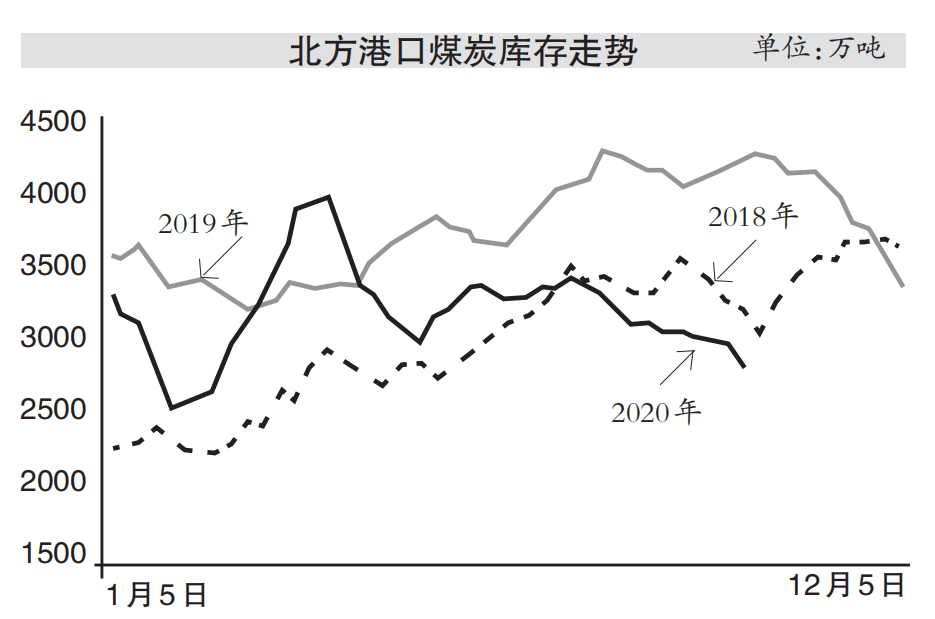 数据显示,当前,全国统调电厂存煤增至1.5亿吨,环渤海四港区存煤比9月末增加28万吨,同比减少638万吨。进口煤方面,预计今年全年煤炭进口量为2.83亿吨,同比下降6%。2021年煤炭进口量或将继续受到抑制,同比约下降5%。综合来看,2021年,动力煤价格重心将继续下移。年初以来,CCI均价为每吨558.8元,同比降幅自2019年的每吨61元缩窄至每吨33.3元。预估2020年全年均价在每吨550元至560元之间,波动区间在每吨470元至630元之间。