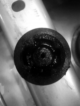 拆检 6#缸排气阀,阀杆顶部75mm 以下全是积炭( 见图 4) ,且排气阀的旋阀器无法旋转。