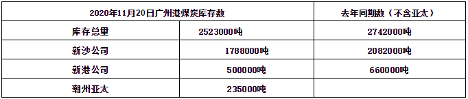 表1 广州港煤炭库存。数据来源:广州华南煤炭交易中心