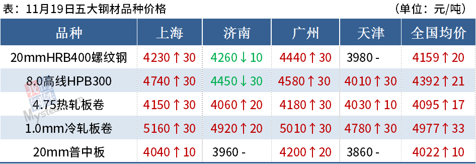 表2 主要钢材品种价格变化。数据来源:我的钢铁网