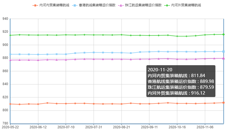 香港航线方面,受疫情防控持续影响,本期肇庆-香港航线运价指数环比上涨0.223%,香港航线运价指数基本与上期持平,环比上涨0.007%。