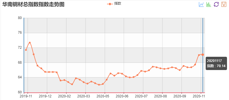 图4 华南建筑钢材价格指数。数据来源:钢铁王国
