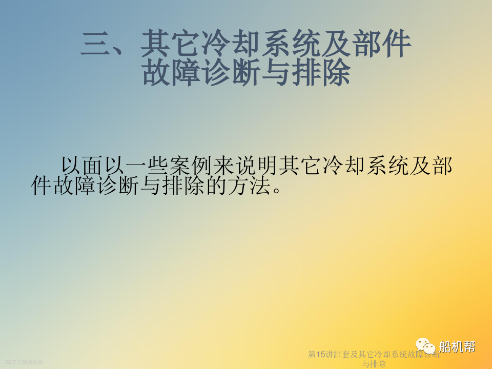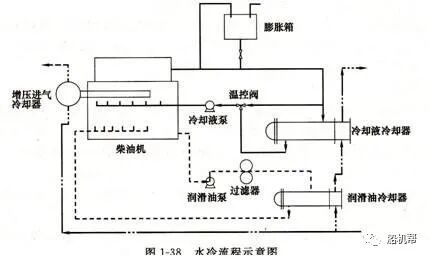 一般柴油机冷却系统是用淡水强制冷却柴油机,然后用海水强制冷却淡水和其他载热流体(如滑油、增压空气等)。