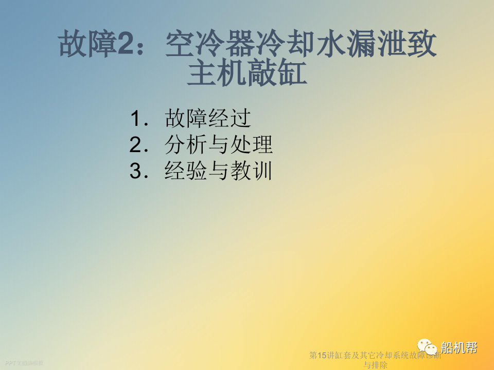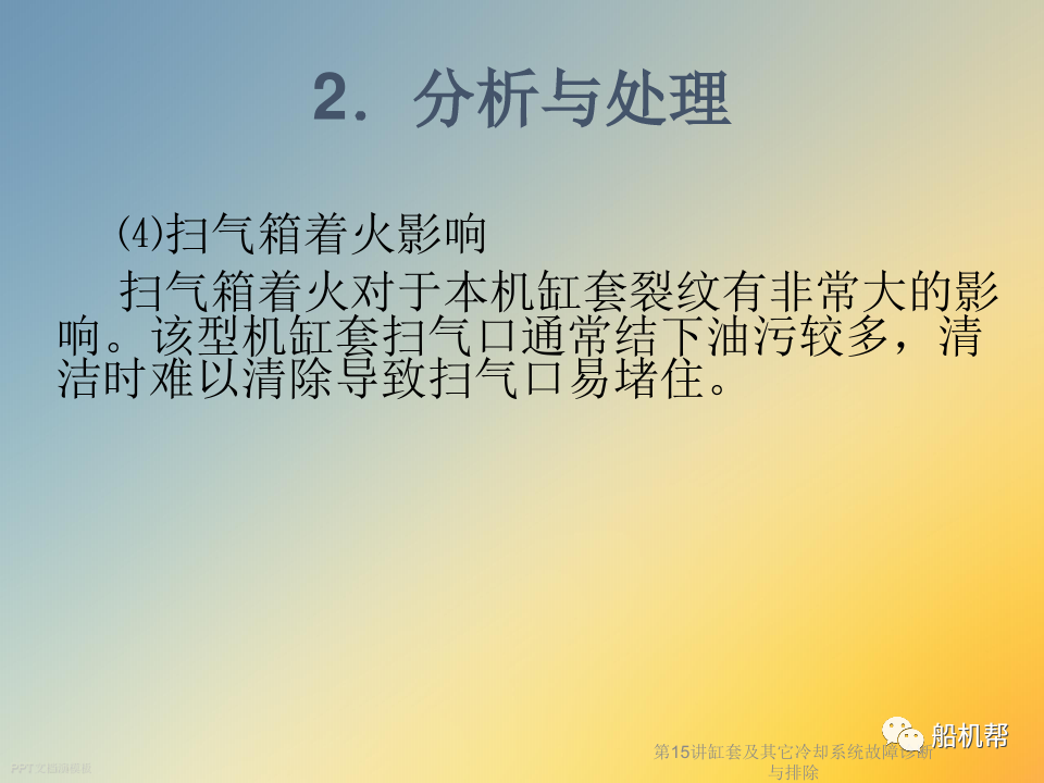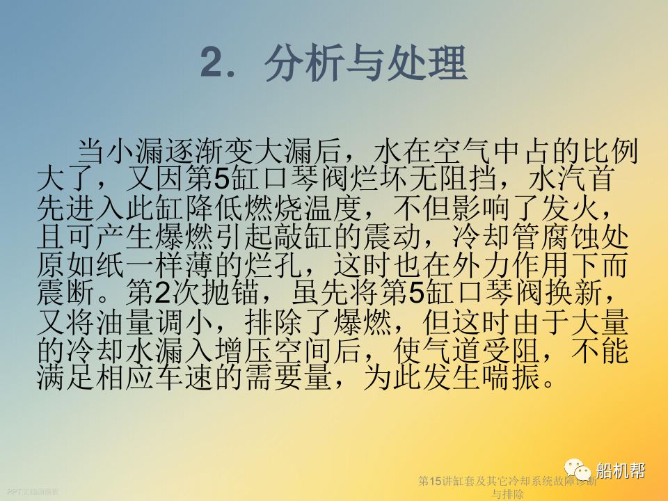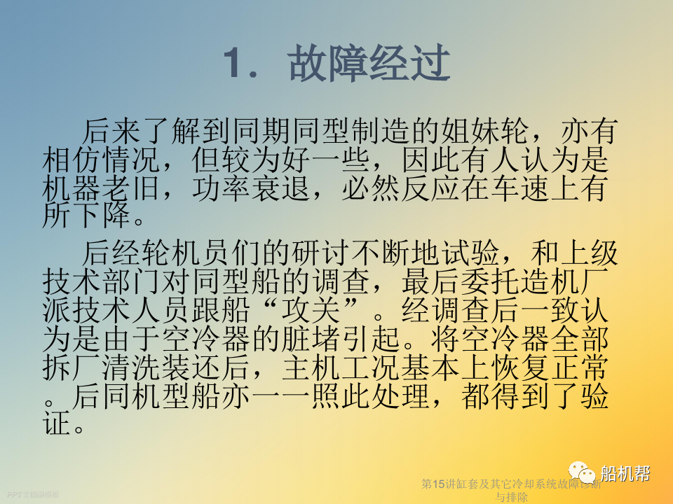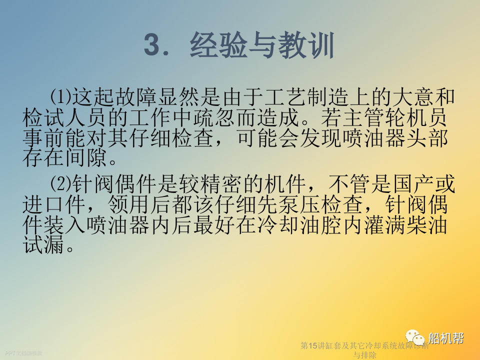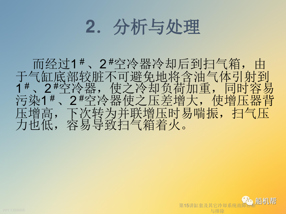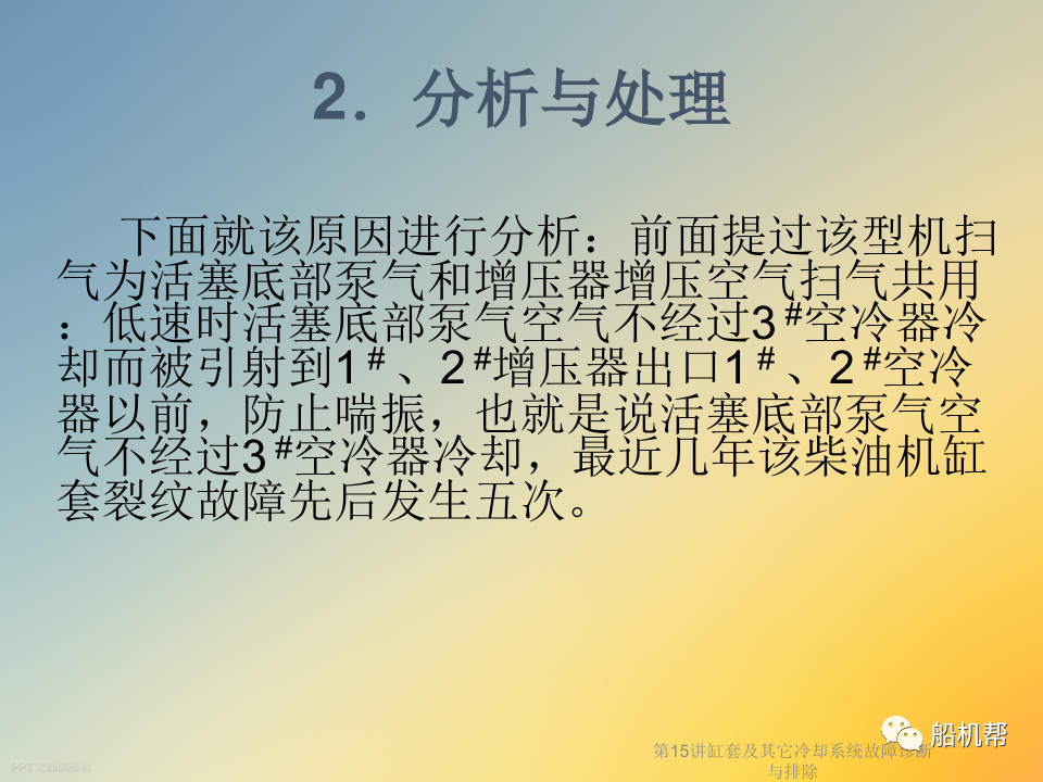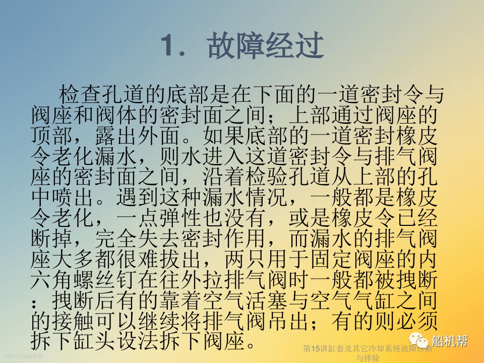 此外,冷却还可以保证运动部件如活塞与缸套的适当间隙、缸壁工作面滑油膜的正常工作状态。