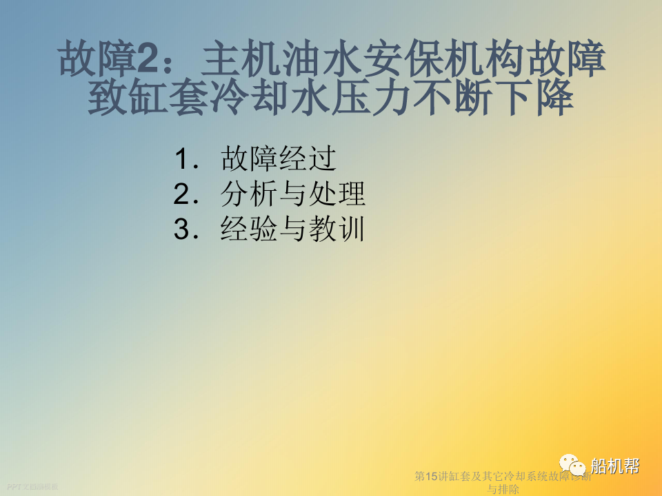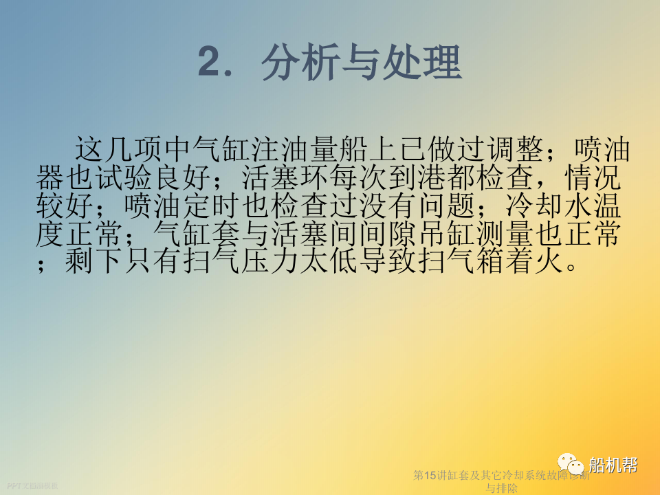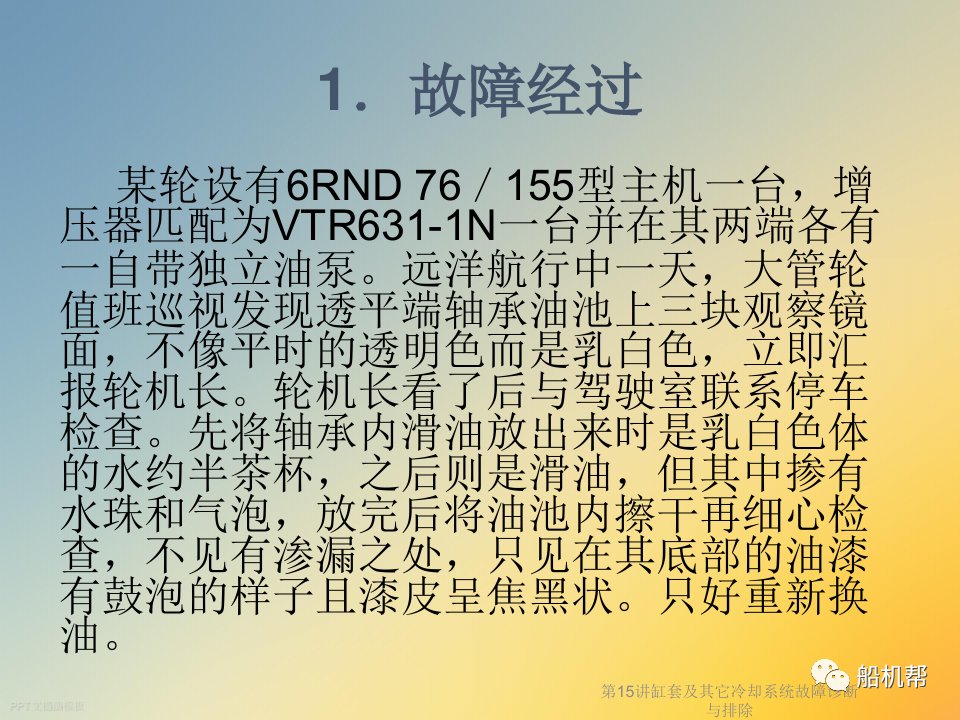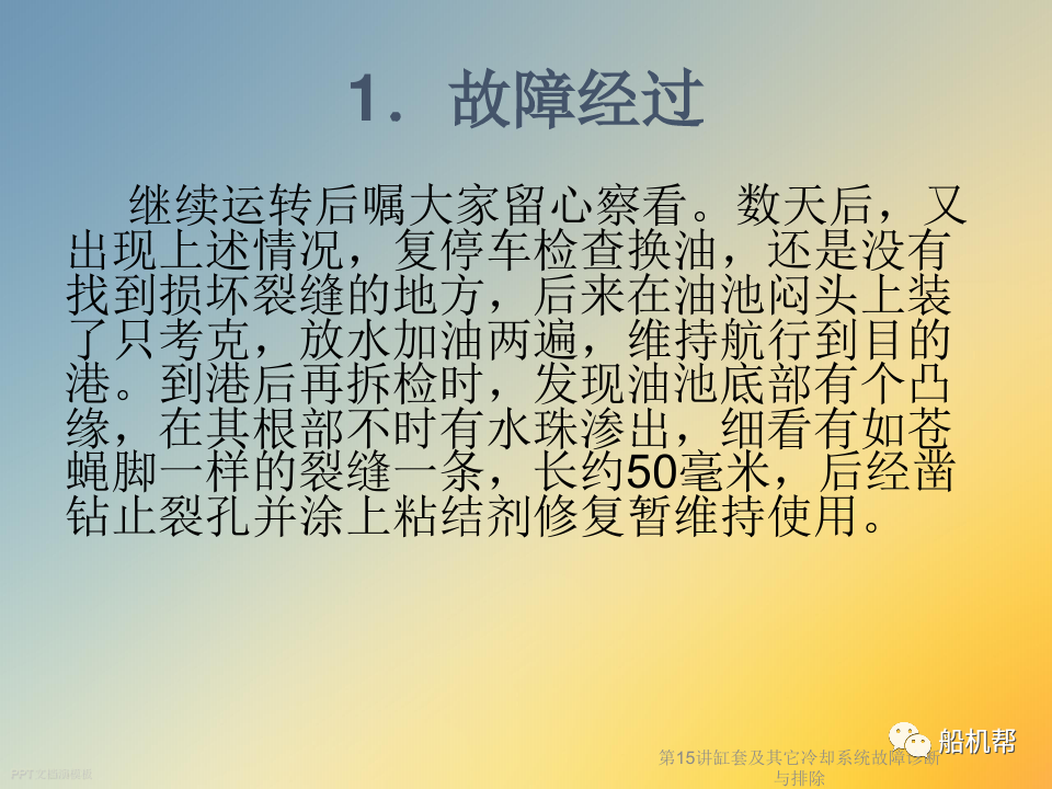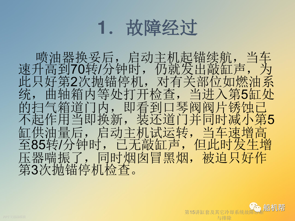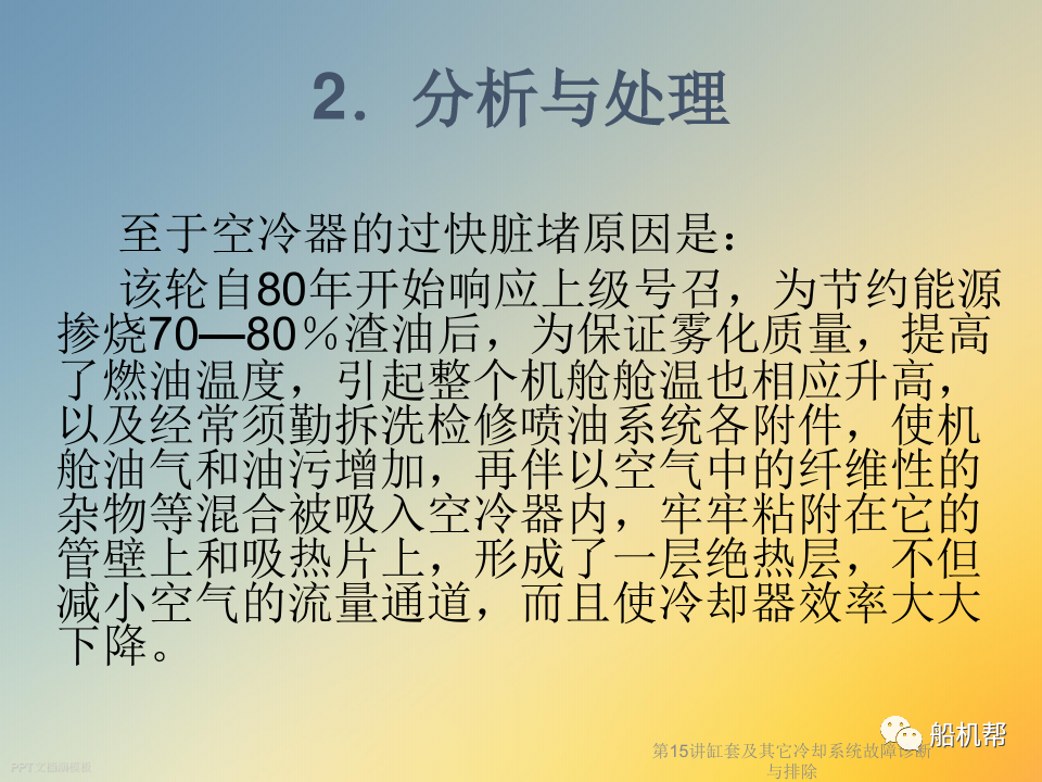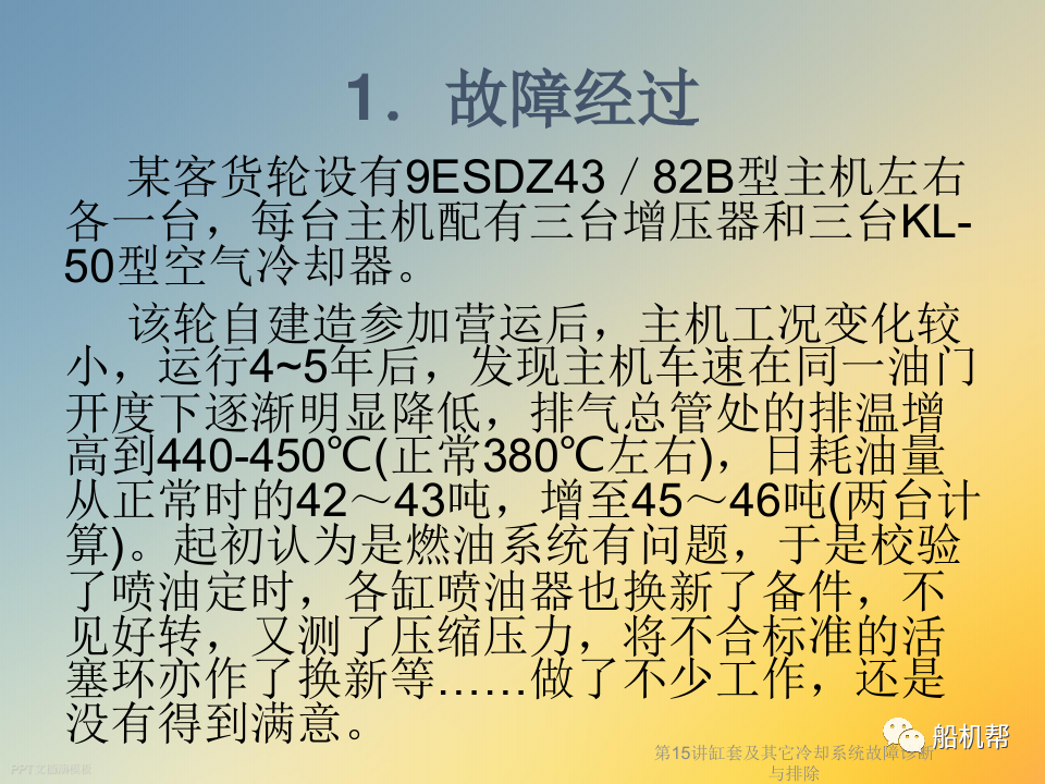 此外,冷却还可以保证运动部件如活塞与缸套的适当间隙、缸壁工作面滑油膜的正常工作状态。
