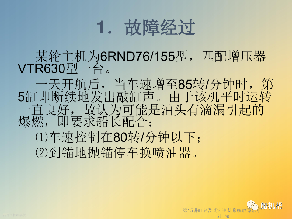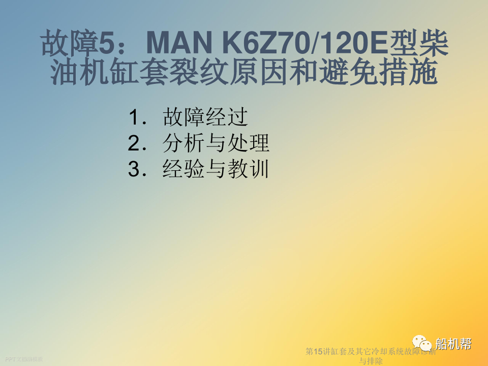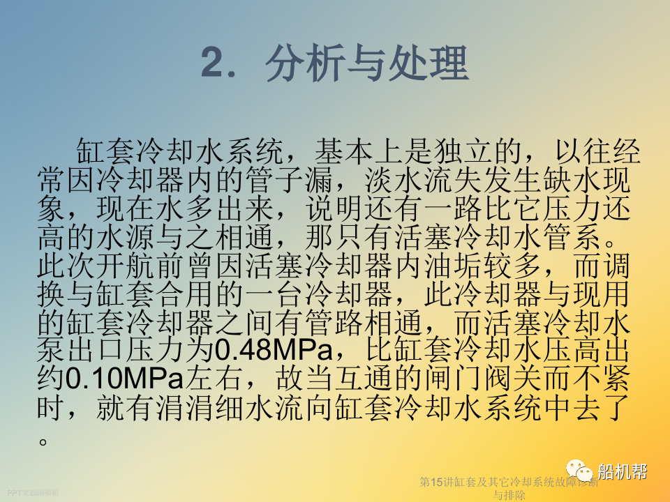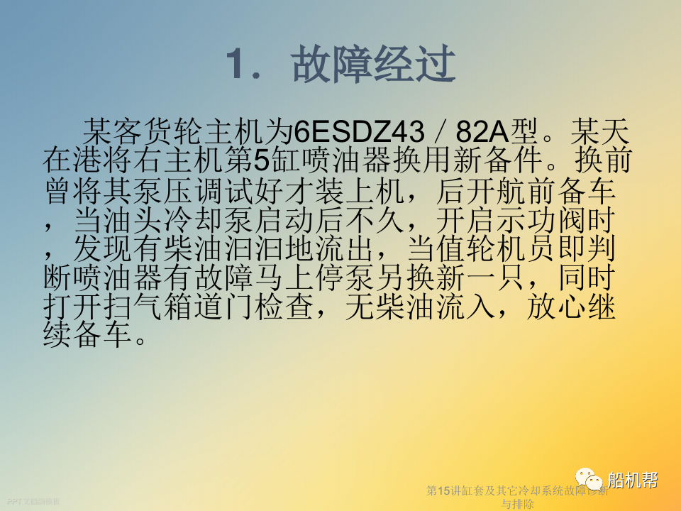 一般分为缸套和气缸盖、活塞、喷油器三个闭式淡水冷却系统。