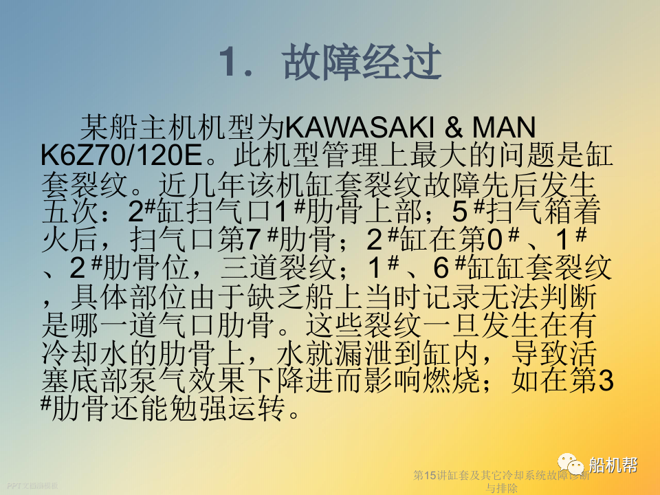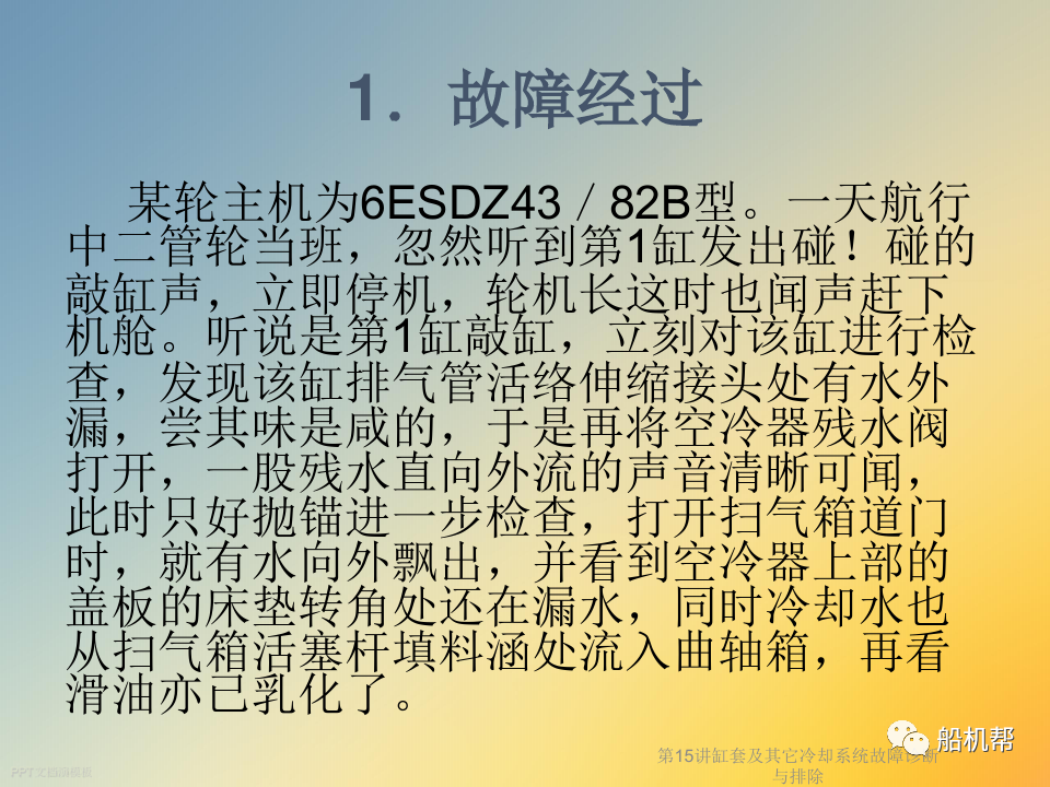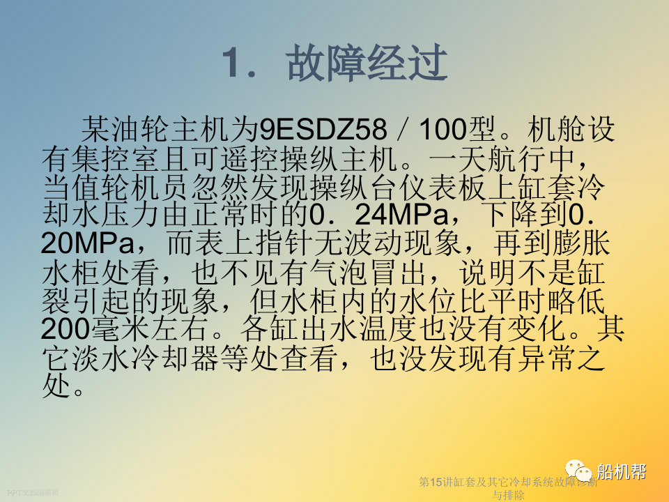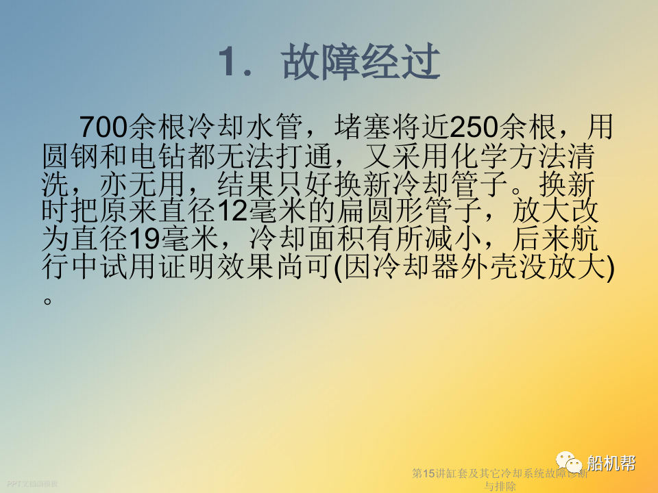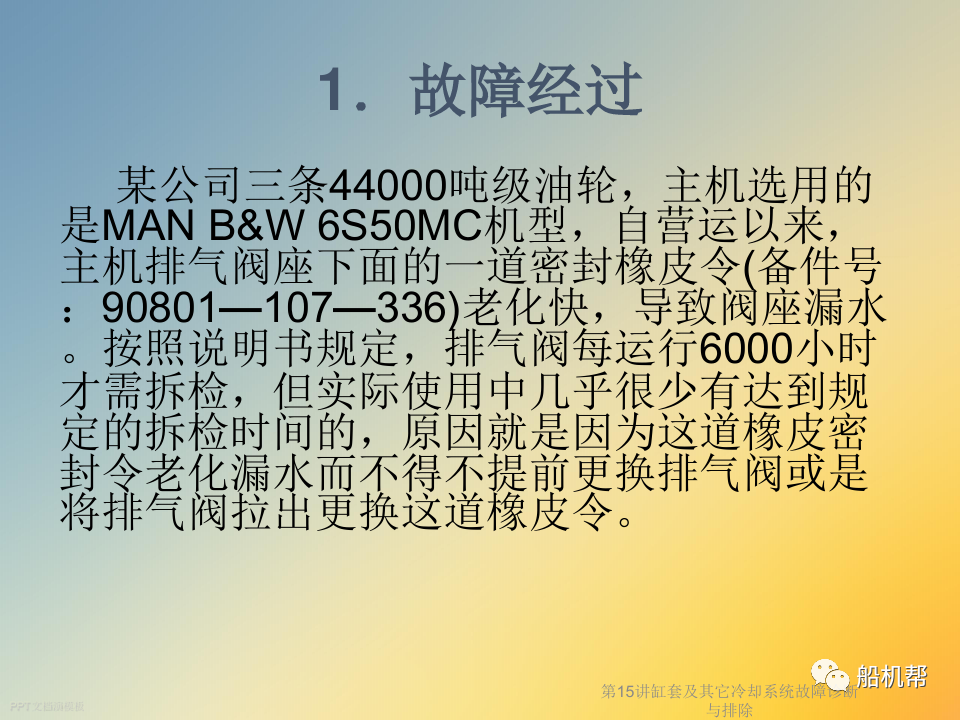 一般分为缸套和气缸盖、活塞、喷油器三个闭式淡水冷却系统。