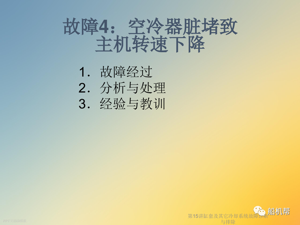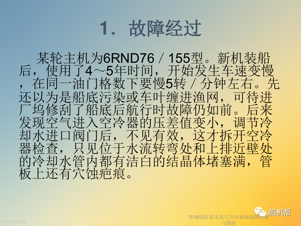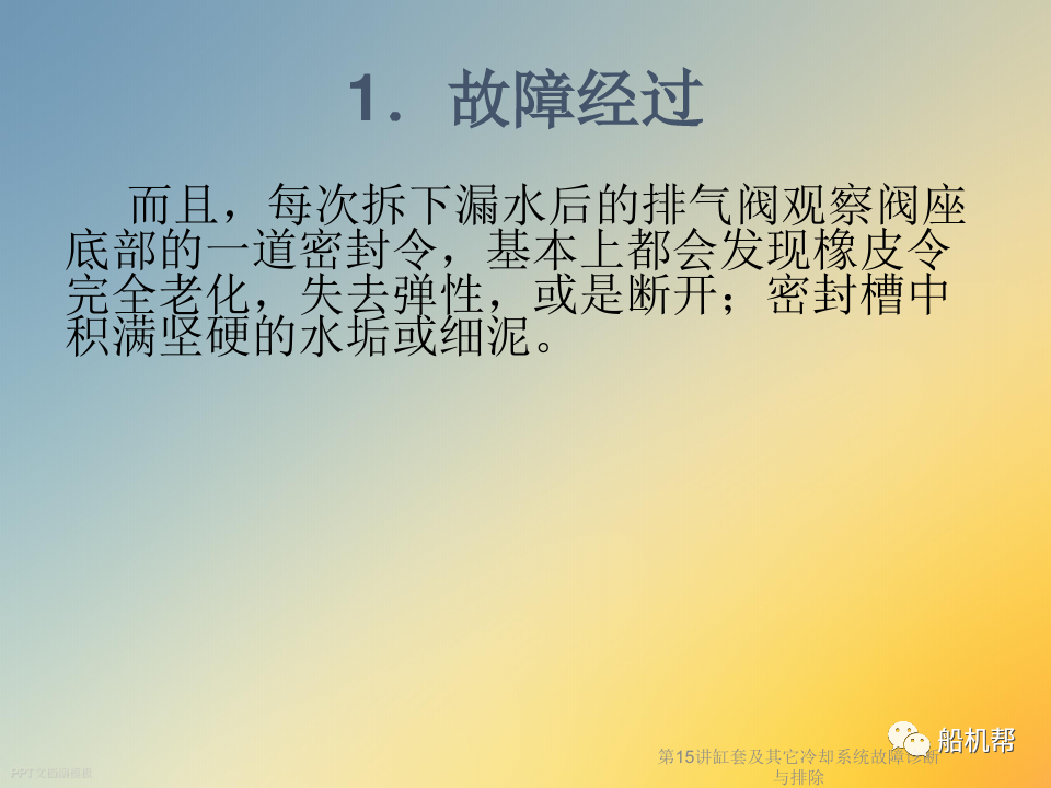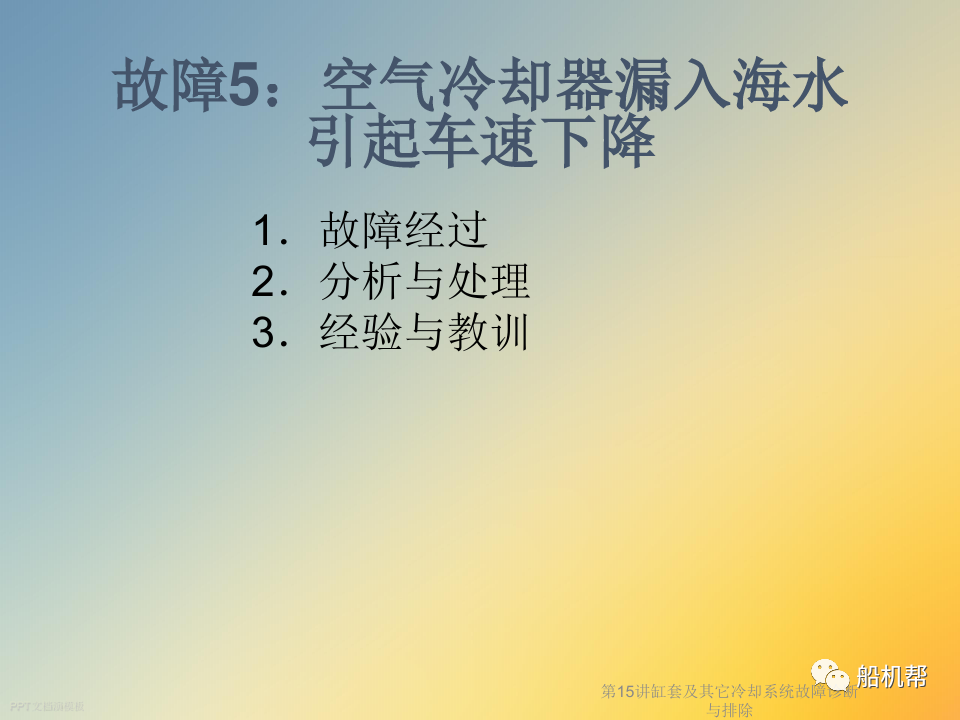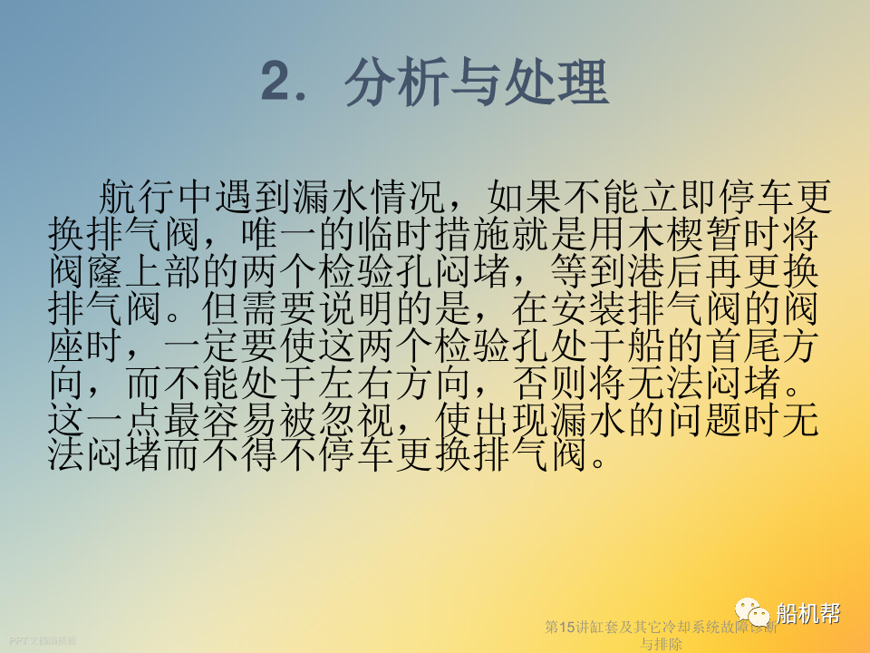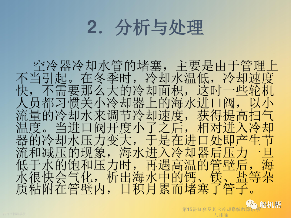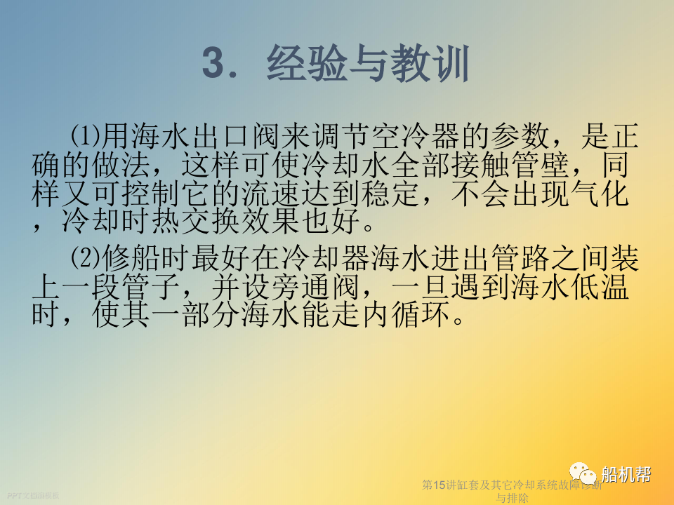 同时注意检查海水滤器和海水阀是否被杂物堵塞。
