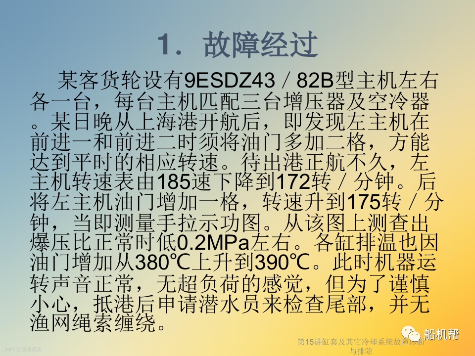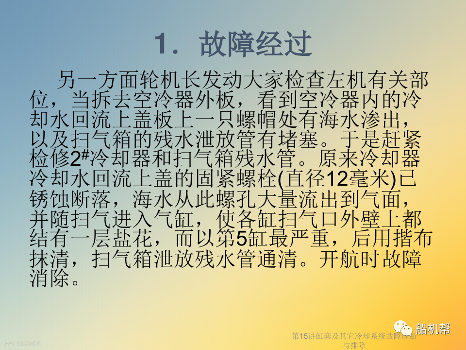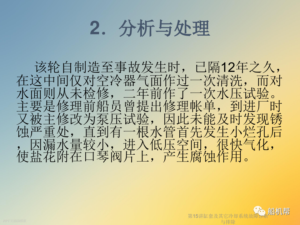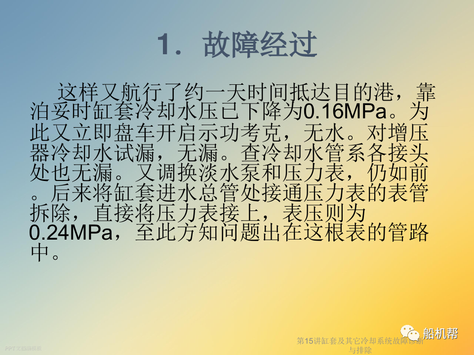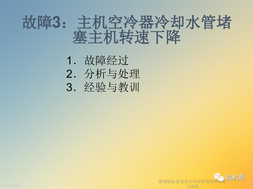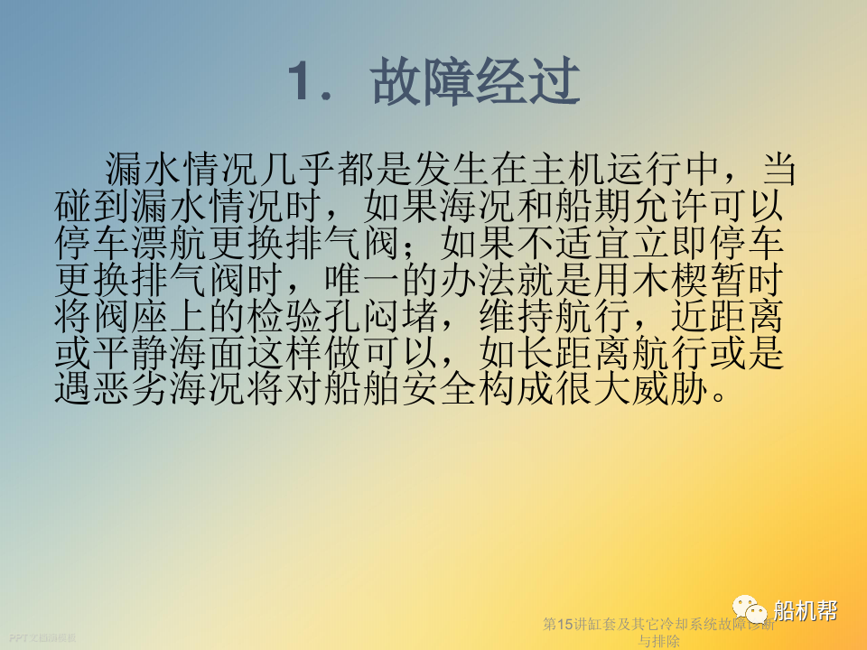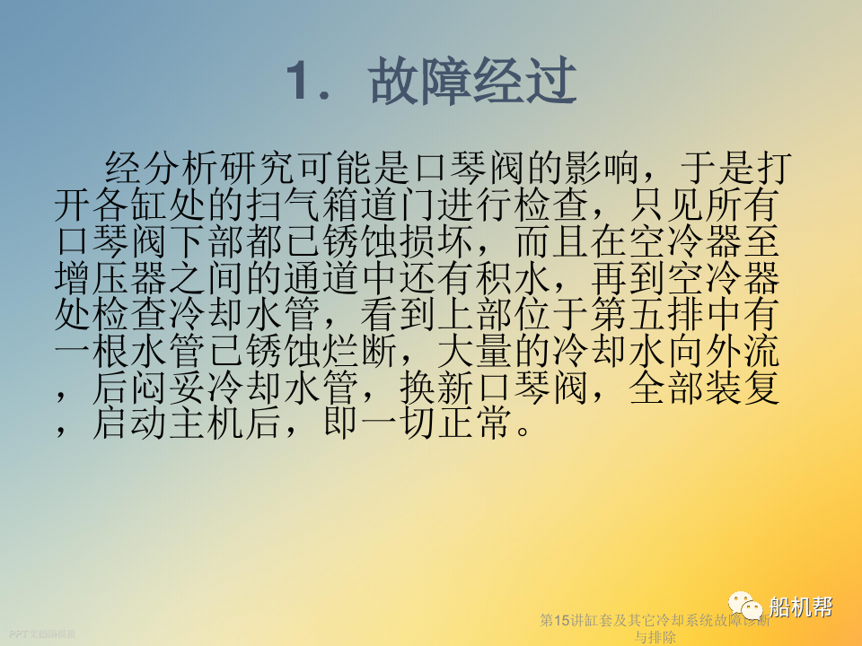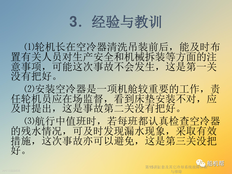 同时注意检查海水滤器和海水阀是否被杂物堵塞。