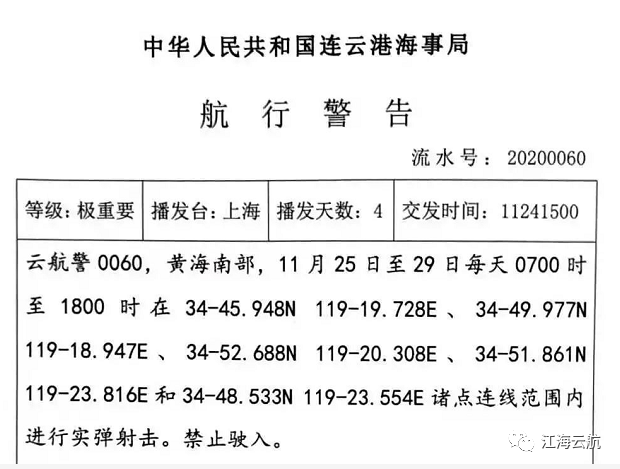 8、黄海实弹射击,船舶禁止驶入!请看通告!