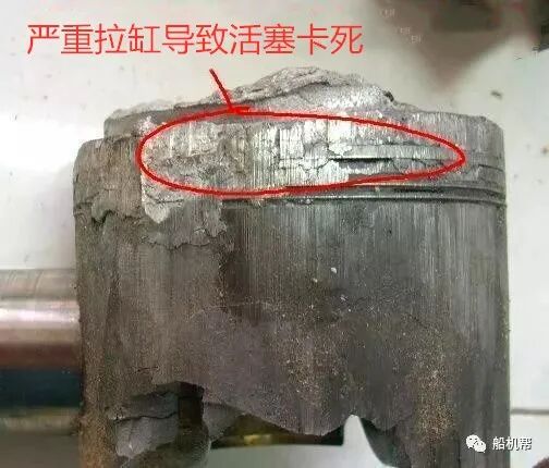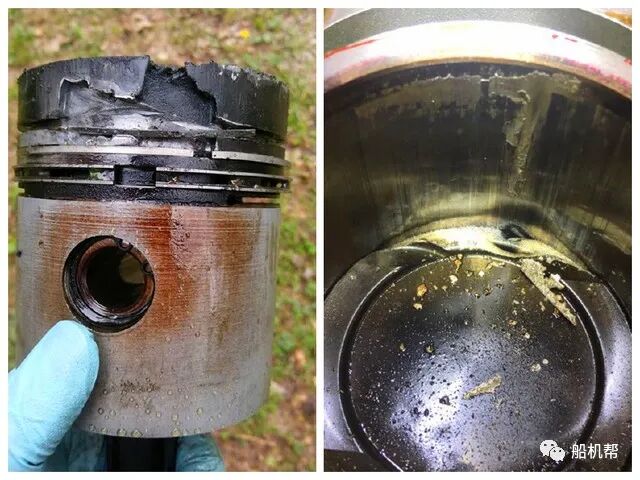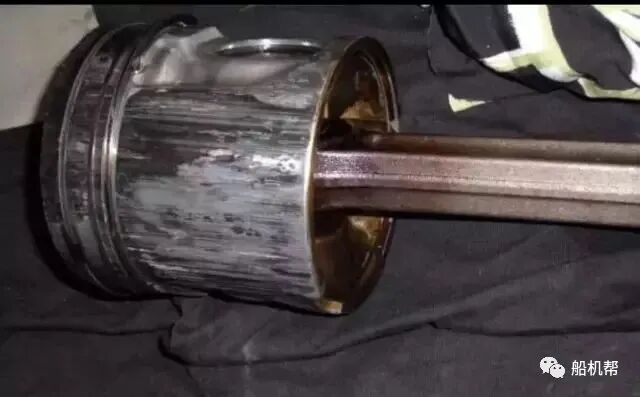 (3)活塞过热,导致活塞过热又有许多因素,包括喷油时刻太早(大家俗话叫供油过早或火头过早),冷却水损失、水垢太多,水泵停转等造成冷却水流量不足或完全没有压力冷却水,汽缸套过热保不住润滑油膜,缸套与活塞呈半干式摩擦状态,运转吃力,密封不好造成串气等等因素。
