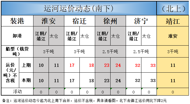 运河运价分析主要基于具有行业一定权威性的多家船东提供出来的运价数据,仅供参考。