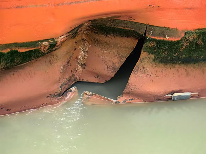 2025年3月,“A”轮自原石浦港5号锚地起锚开航驶往台州的途中与回港的渔船“B”轮在象山沿海泥螺屿西南侧水域发生碰撞。事故造成“B”轮球鼻首上方船首一处破口,“A”轮货舱右前围墙一处凹陷变形,附近一节栏杆断裂,右舷第三个空气舱破损进水。