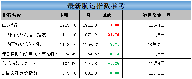 当下处于电厂终端检修季,冬储煤需求开始,但数量不多,用煤主体采购节奏放缓。非电领域建材、化工等行业受终端同样受到需求不足等因素制约,运输需求难有大的起色,短期内长江运价上行动力不足。后续需重点关注天气状况、航道通行效率等因素的影响。