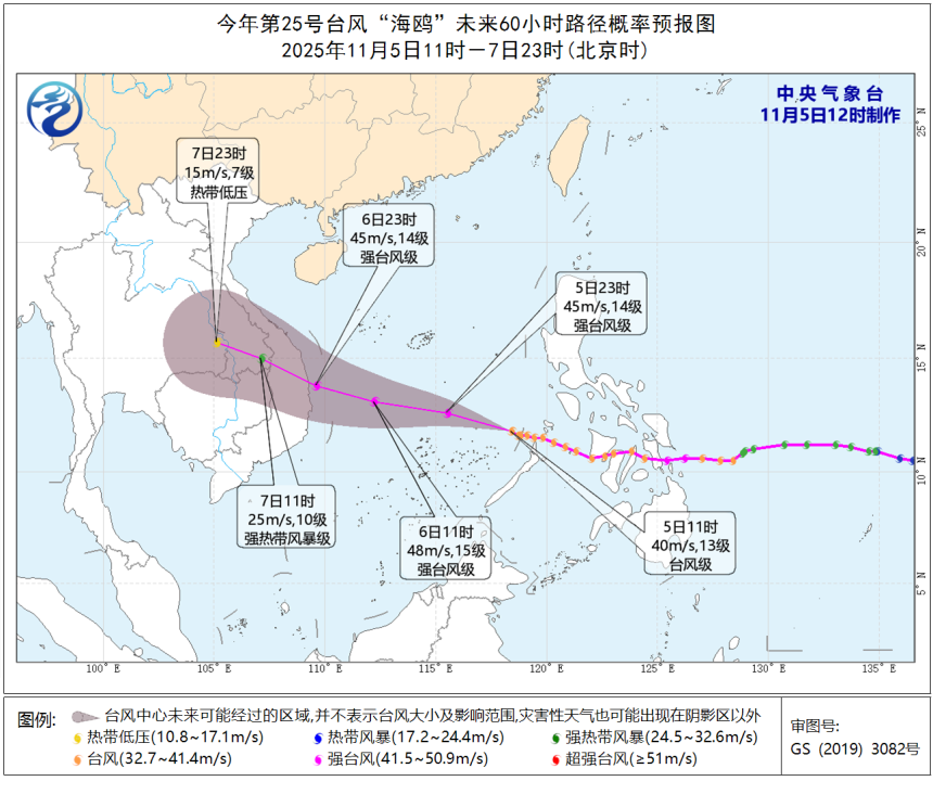 今晨台风“海鸥”已进入南海,未来将沿偏西路径移动,伴有微弱北抬,强度持续增强,预计再度加强为强台风级别。