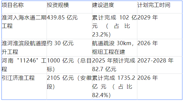 淮河干线黄金水道建设投资规模巨大,涉及多个重大工程项目: