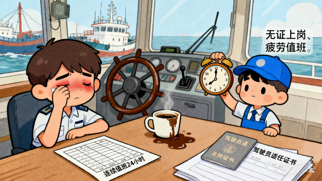 未按规定保持安全值班:瞭望值班人员捕鱼、值班连轴转,未值班期间“犯困”;有的渔船安排未取得相应驾驶员适任证书的人员从事驾驶和瞭望值班工作;更有甚者,干脆没人值班值守,等看到商船时,连避让的时间都没有。