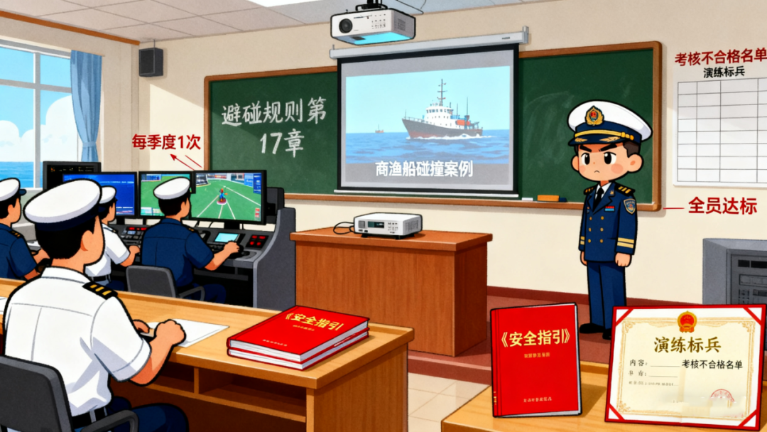 •狠抓培训演练:将《1972年国际海上避碰规则》、《中国沿海航行船舶防范商渔船碰撞安全指引》纳入商渔船船员必修课,每季度组织避让、搜救实操演练,不合格者不准上岗。
