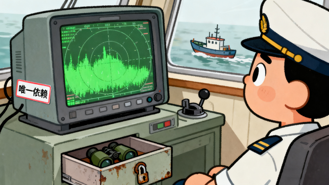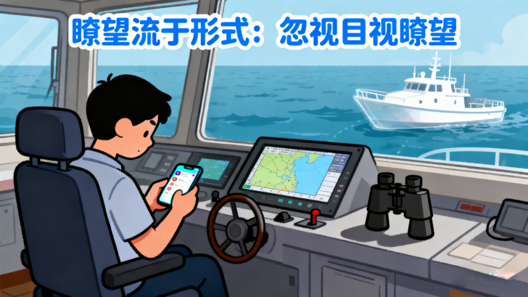 瞭望疏忽:值班人员未通过视觉、雷达和AIS等途径保持正规瞭望,长时间低头记日志、玩手机,或过度依赖电子海图等单一电子设备,忽视用眼睛去“扫海”。可那些没开AIS的渔船,电子海图根本“抓不住”,等目视发现时,往往已近在眼前。