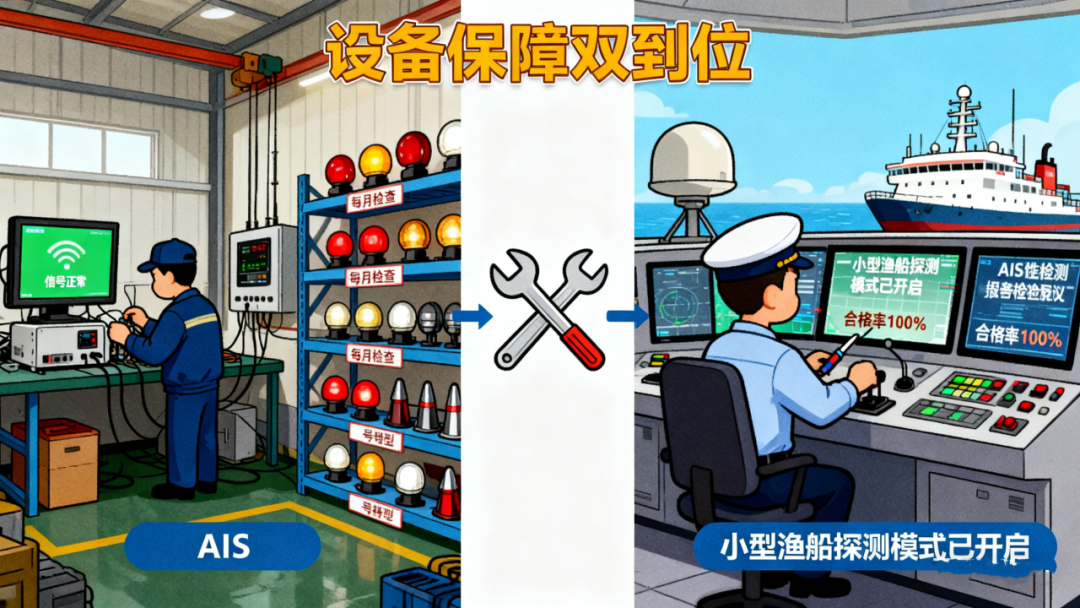 •强化设备保障:渔船公司按照规则要求为渔船配备配齐AIS、VHF,确保号灯、号型完好。
