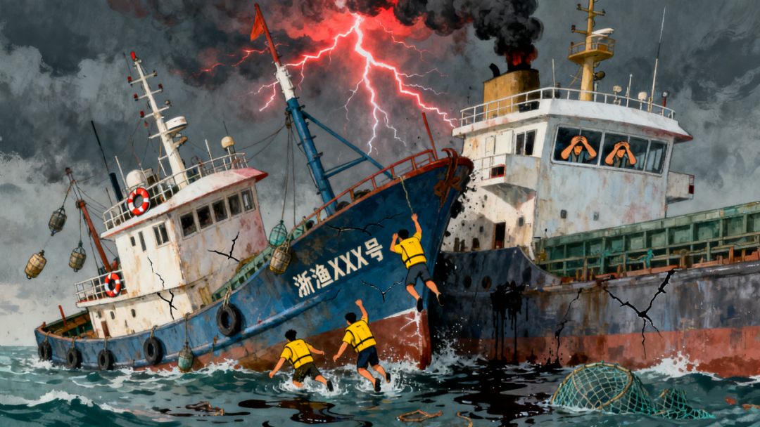 另一边,散货船值班驾驶员小李正低头一笔一划记航海日志,完全没留意到前方海域的渔船;船长盯着电子海图规划航线,可海图上压根没显示渔船的踪迹——谁能想到,那艘渔船压根没开AIS。等小李终于抬头时,两船距离只剩800米!他惊得大喊一声,船长瞬间下令左满舵、紧急减速,可船身巨大的惯性根本刹不住。“砰!”一声闷响震得两船都在摇晃,散货船船头狠狠撞在渔船右舷中部,渔船像被掰弯的火柴盒,瞬间往一侧倾斜,2名船员没抓稳,直接掉进冰冷的海水里。尽管散货船船员立刻放下救生艇搜救,仍有1名船员被海浪吞没,再也没上来。