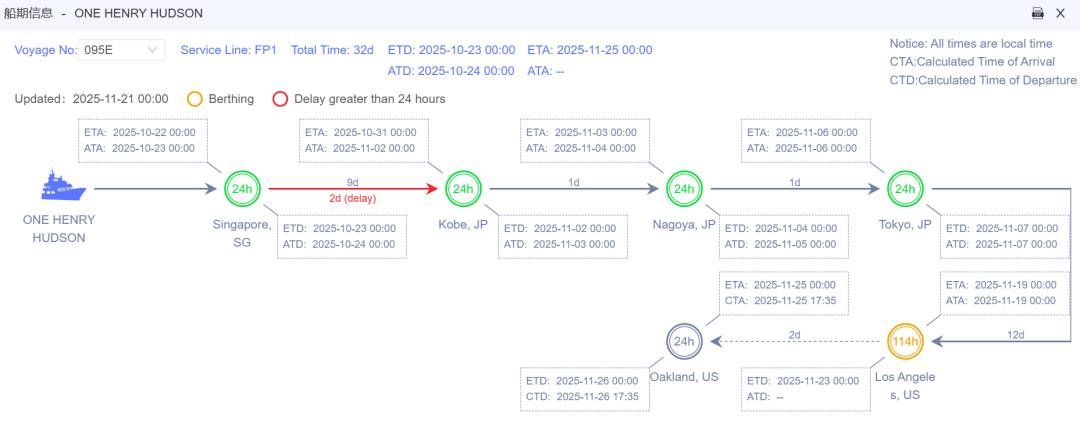 大船期数据显示,“One Henry Hudson”轮此次承载的并非ONE一家,其共舱班轮公司中还包括达飞、HMM、东方海外、中远海运、长荣海运及阳明海运。
