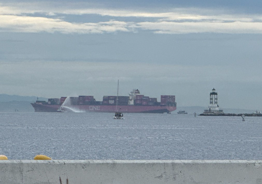 根据洛杉矶消防局的通报,此次事故的灭火和船舶控制难度极高:火点位于多层下舱,空间狭窄、难以进入。大约在20:00,船中部发生爆炸,导致船上照明和甲板吊机全部断电。虽然船体吃水和稳定性未见异常,但多个货舱被确认存在危化品,危化小组随即展开不间断空气监测。