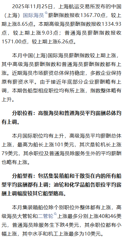 中国(上海)国际海员薪酬指数评述
