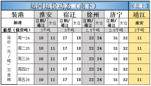 运河运价分析主要基于具有行业一定权威性的多家船东提供出来的运价数据,仅供参考。