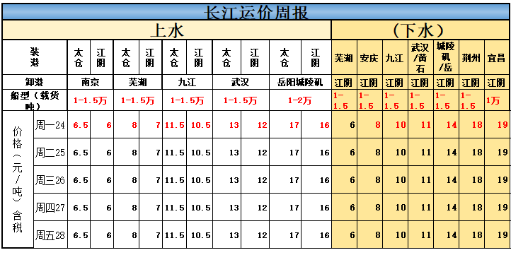 江阴到芜湖运价上涨0.5元为7元/吨;