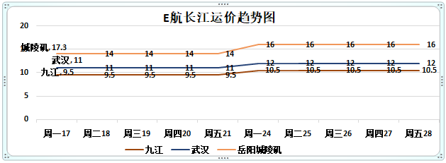 江阴到城陵矶的运价上涨2元为16元/吨。