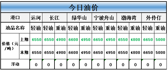 今天外港船燃价格和上期比均无变化,,具体价格如下图。