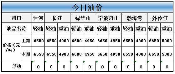 今天外港船燃价格和上期比均无变化,具体价格如下图。